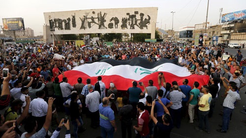 وخرج المتظاهرون إلى ساحة التحرير رغم تحذير قيادة العمليات المشتركة، امس ، من عدم إصدار تصريح بتنظيم التظاهرة التي دعا إليها الزعيم السياسي مقتدى الصدر، وقالت إنها ستعتبر أي شخص يشارك في التجمع وهو مسلح تهديدا إرهابيا.