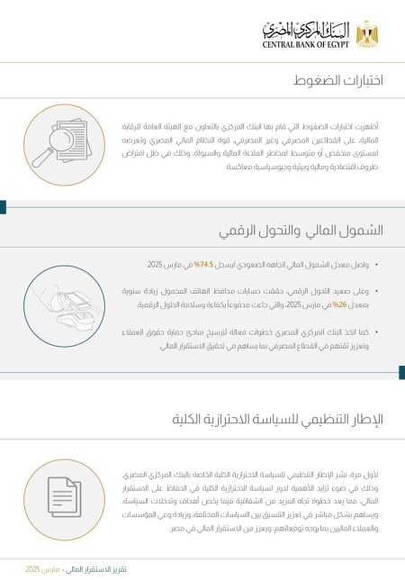 إنفوجراف| المركزي المصري يصدر تقرير الاستقرار المالي مارس 2025