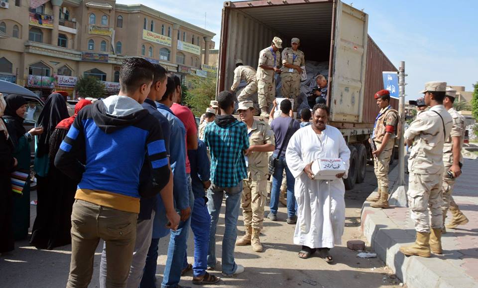 وقد بدأت الجيوش الميدانية والمناطق العسكرية في توزيع مليون عبوة غذائية كأسبقية اولي تم نقلها داخل اسطول من الشاحنات وسيارات النقل المجهزة الي ومناطق ونقاط التوزيع بكافة مدن ومحافظات الجمهورية حيث يتم طرح 400 الف عبوة بالمحافظات التي تدخل بنطاق مسئولية المنطقة المركزية العسكرية و 200 الف عبوة بمحافظات المنطقة الجنوبية العسكرية ، وطرح 140 الف عبوة بنطاق مسئولية الجبش الثاني الميداني ، وتوزيع 120 الف عبوة بمحافظات المنطقة الشمالية العسكرية و40 الف عبوة بالمنطقة الغربية العسكرية ، فيما يقوم جهاز مشروعات الخدمة الوطنية للقوات المسلحة بتوزيع 40 الف حصة غذائية داخل 422 منطقة بالقري والنجوع والمناطق الاكثر احتياجا بمختلف مراكز ومدن الجمهورية ، وذلك حرصاً من الدولة ومؤسساتها المختلفة على التلاحم مع ابناء الشعب المصري وتخفيف العبء عن كاهلهم .