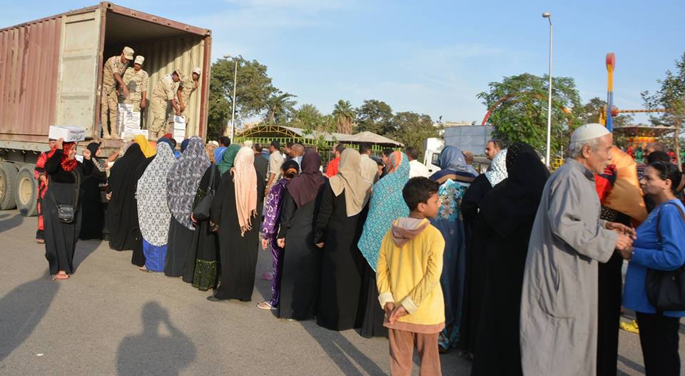 726في اطار استكمال مبادرة توزيع الحصص الغذائية بنصف الثمن علي المواطنين والتي تنفذها القوات المسلحة بناء علي توجيهات الرئيس عبد الفتاح السيسي , وذلك لتخفيف العبء عن كاهل المواطنين، ولمحاربة غلاء الاسعار والقضاء علي جشع التجار المحتكرين للسلع الاساسية