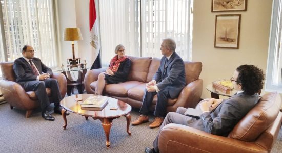 التقى السفير أحمد أبو زيد سفير مصر لدى كندا، اليوم، مع السيدة “إليزابيث كينجستون” رئيسة مكتب المجلس الكندي الدولي بالعاصمة أوتاوا، والسيد “حميد جورجاني” رئيس مجموعة دراسات الشرق الأوسط بالمجلس.