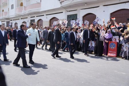 رحب أهالي قرية الأبعادية في البحيرة، بالرئيس عبدالفتاح السيسي، في مشهد جماهيري حاشد.