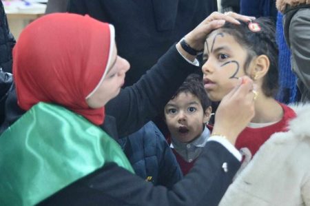 صور| الأطفال يرسمون علمي مصر وفلسطين في أول أيام معرض الكتاب