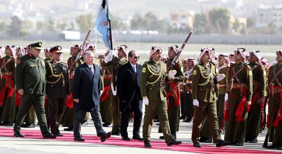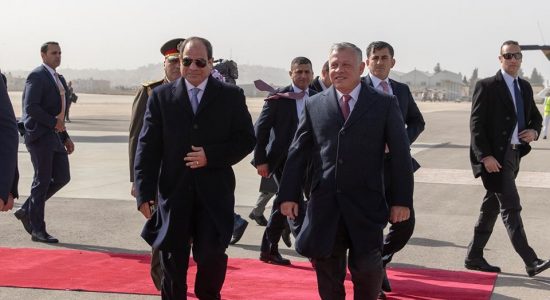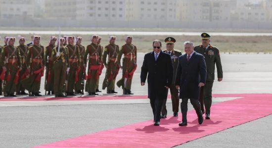 وصل السيد الرئيس عبد الفتاح السيسي اليوم إلى العاصمة الأردنية عمان، حيث كان في استقباله جلالة الملك عبد الله الثاني عاهل المملكة الأردنية الهاشمية وكبار المسئولين الأردنيين. وقد أجريت لسيادته فور الوصول مراسم الاستقبال الرسمي وتم عزف السلامين الوطنيين واستعراض حرس الشرف.