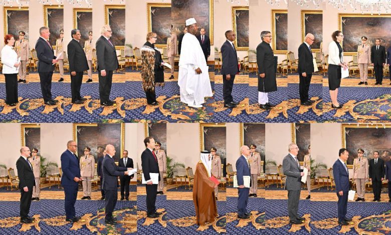 تسلم الرئيس عبد الفتاح السيسي، اليوم، أوراق اعتماد ثلاثة وعشرين سفيرًا جديدًا لدى جمهورية مصر العربية، هم: