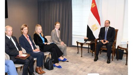 استقبل الرئيس عبد الفتاح السيسي، اليوم، السيدة كايا كالاس، الممثلة العليا للاتحاد الأوروبي للشؤون الخارجية والسياسة الأمنية ونائبة رئيسة المفوضية الأوروبية، وذلك بمقر إقامة سيادته في العاصمة البلجيكية بروكسل، وذلك بحضور الدكتور بدر عبد العاطي، وزير الخارجية والهجرة وشؤون المصريين في الخارج، وسفيرة الاتحاد الأوروبي في مصر، ونائب رئيس جهاز الخدمة الخارجية للاتحاد الأوروبي، ومدير عام إدارة الشرق الأوسط وشمال إفريقيا بجهاز الخدمة الخارجية للاتحاد الأوروبي.