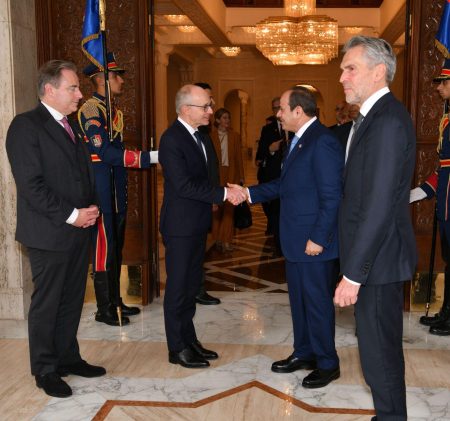 استقبل الرئيس عبد الفتاح السيسي، اليوم، كلاً من السيد لوك فريدن رئيس وزراء دوقية لوكسمبورج، والسيد ديك سخوف رئيس وزراء مملكة هولندا، والسيد بارت دي فيفر رئيس وزراء مملكة بلجيكا، وذلك بحضور الدكتور بدر عبد العاطي وزير الخارجية والهجرة وشئون المصريين في الخارج، ومن جانب لوكسمبورج السيد كريستيان مولر سفير دوقية لوكسمبورج في القاهرة، ومن الجانب الهولندي السيد بيتر موليما سفير مملكة هولندا بالقاهرة، والسيدة هيلين ستيرجيو مستشار الشئون الخارجية ومنسق الدفاع، ومن الجانب البلجيكي السيد جيرون بيتورز، مسئول الشئون السياسية بسفارة مملكة بلجيكا بالقاهرة.