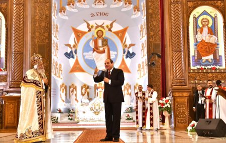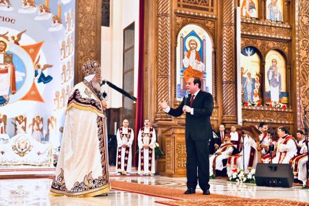 قدم الرئيس عبد الفتاح السيسي التهنئة بعيد الميلاد المجيد، إلى قداسة البابا تواضروس الثاني والإخوة الأقباط، حيث حضر بنفسه إلى كاتدرائية ميلاد المسيح بالعاصمة الإدارية الجديدة.
