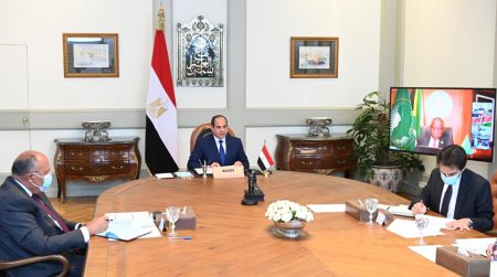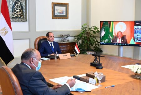 شارك الرئيس عبد الفتاح السيسى مساء اليوم، عبر الفيديو كونفرنس فى قمة أفريقية مصغرة لرؤساء الدول الاعضاء بهيئة مكتب رئاسة الاتحاد الأفريقى لمناقشة قضية سد النهضة، برئاسة الرئيس سيريل رامافوزا رئيس جمهورية جنوب أفريقيا والرئيس الحالى للاتحاد، وبحضور كل من رئيس وزراء السودان عبد الله الحمدوك ورئيس وزراء إثيوبيا آبى إحمد.