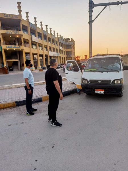 إلتقي المحافظ خلال الجولة عدداً من سائقى سيارات الأجرة، وشدد عليهم بعدم السماح بركوب المواطنين إلا بعد إرتداء الكمامة، وكلف المحافظ رجال المرور بسحب تراخيص عدد من سيارات الأجرة خلال جولته لعدم إرتداء السائقين للكمامة، موجهاً رؤساء المدن والأحياء بمتابعة إلتزام المترددين على المنشآت الحكومية والخاصة أو مقار البنوك والأسواق والمحال، بإرتداء الكمامات إلى جانب وسائل النقل الجماعي، وإتخاذ الاجراءات القانونية حيال المخالفين.