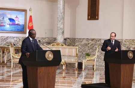 نشر السفير بسام راضي، المتحدث الرسمي باسم رئاسة الجمهورية، صور استقبال الرئيس عبدالفتاح السيسي، اليوم، بقصر الاتحادية، الرئيس عمر سيسوكو إمبالو، رئيس جمهورية غينيا بيساو.