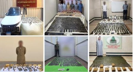 وعثر بحوزة المتهمين على طن و172 كيلو جرام من المواد المخدرة المتنوعة «حشيش، شابو، هيدرو، كمية من الأقراص المخدرة، 7 قطع سلاح نارى».