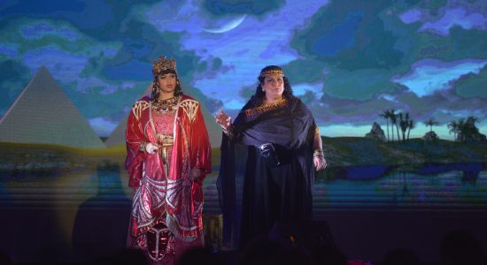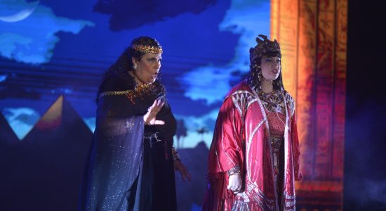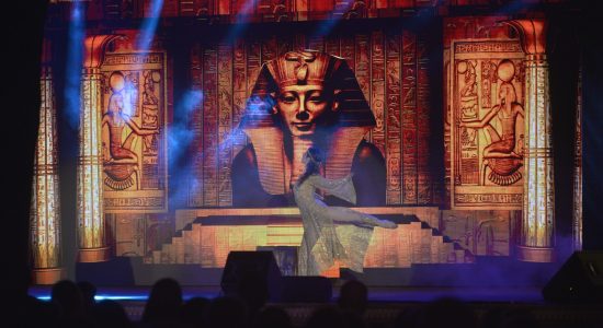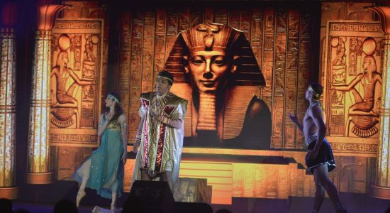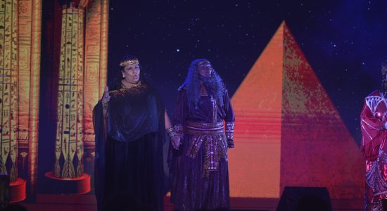 ونجح نجوم فرقة اوبرا القاهرة بمديرها الفني السوبرانو العالمية ايمان مصطفي في جذب الانظار بأدائهم المتميز وملابسهم الفرعونية بما تحمله من دلالة علي الحضارة المصرية وتمكنوا بقدراتهم الصوتية والحركية من سرد القصة بتمكن واقتدار وفي خلفياتهم صور مجسمه تعبر عن العمق التاريخي ومنها المعابد الفرعونية والاهرامات والنيل مع توظيف الإمكانيات التكنولوجية والمؤثرات الضوئية والصوتية والتي خدمت العرض بشكل مباشر ومؤثر وقد تم دمج ذلك فى إطار رؤية فنية وفكرية جديدة للمخرج هشام الطلي تعبر عن مضمون العمل وأهدافه من حيث تظافر الإبداعات الفنية للموسيقى والغناء والباليه بما يليق بأهمية وعظمة تاريخ مصر.