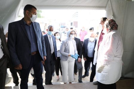 وحرصت الوزيرة خلال جولتها على متابعة سير العمل وتفقدت خيام الانتظار والفرز المخصصة لاستقبال الحالات بالمستشفى، والتي كانت قد وجهت بإقامتها وذلك للوقوف على ما يتم من تنظيم استقبال الحالات وانتظارهم في صفوف منظمة منعًا للتكدس، واطمأنت على كفاءة عمل مراوح الهواء والتكييفات بداخلها، كما وجهت بتشغيل الشاشات التي تم تركيبها لتوعية المتواجدين بطرق الوقاية والإجراءات الاحترازية التي يجب اتباعها.