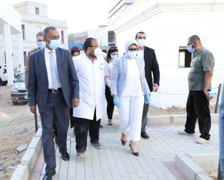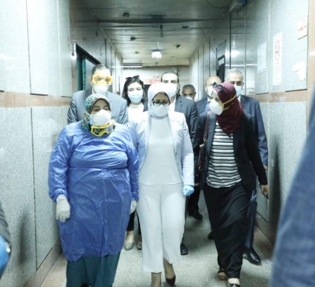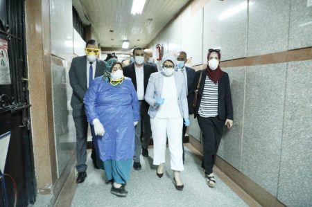 وخلال الجولة حرصت وزيرة الصحة والسكان على الاطمئنان على الأطقم الطبية والاستماع إليهم وتذليل أي تحديات تواجههم أثناء تأدية عملهم، كما تقدمت بالشكر لكافة الأطقم الطبية على ما يبذلونه من جهد وإخلاص لحماية بلدهم والتصدي لفيروس كورونا، قائلة لهم ” أنتم أبطال تصنعون ملحمة في التصدي للفيروس،