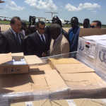 وأضاف بأن الطائرة حملت علي متنها مساعدات دوائية مقدمة من الوكالة المصرية للشراكة من أجل التنمية، حيث تم تسليم المساعدات لوزارة الصحة الجنوبية.