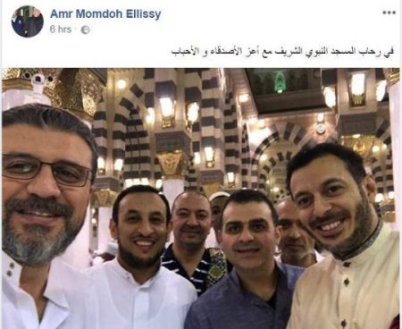 نشر الإعلامى عمرو الليثى صورة له عبر حسابه الشخصى على موقع التواصل الاجتماعى “فيس بوك” برفقة الفنان مصطفى شعبان والشيخ رمضان عبد المعز بالمسجد النبوى لأداء مناسك العمرة.