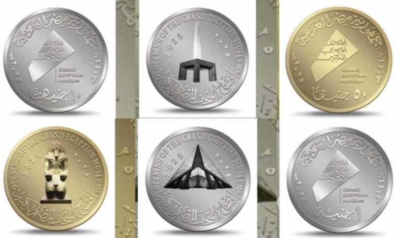 قال الدكتور شريف حازم مستشار الوزير للشئون الهندسية، إن العملات التذكارية للمتحف المصري الكبير تضم ٦ فئات من خام الذهب والفضة: «جنيه، ٥ جنيهات، ١٠ جنيهات، ٢٥ جنيهًا، ٥٠ جنيهًا، مائة جنيه»، تحمل كل منها تصميمًا فريدًا يبرز العناصر المعمارية والأثرية المميزة للمتحف، ومنها: «المسلة المعلقة، الواجهة والمدخل الرئيسي، مراكب الشمس، تمثال رمسيس، وقناع توت عنخ آمون الذهبي».