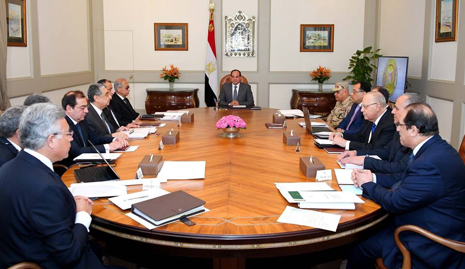 واستهل الرئيس السيسي نشاطه الأسبوعي بعقد اجتماع حضره المهندس شريف إسماعيل رئيس مجلس الوزراء، وطارق عامر محافظ البنك المركزي، ووزراء الدفاع، والإسكان، والكهرباء، والداخلية، والبترول، والعدل، والطيران المدني، والري، والتموين، والقائم بأعمال رئيس المخابرات العامة، ورئيس هيئة الرقابة الإدارية.