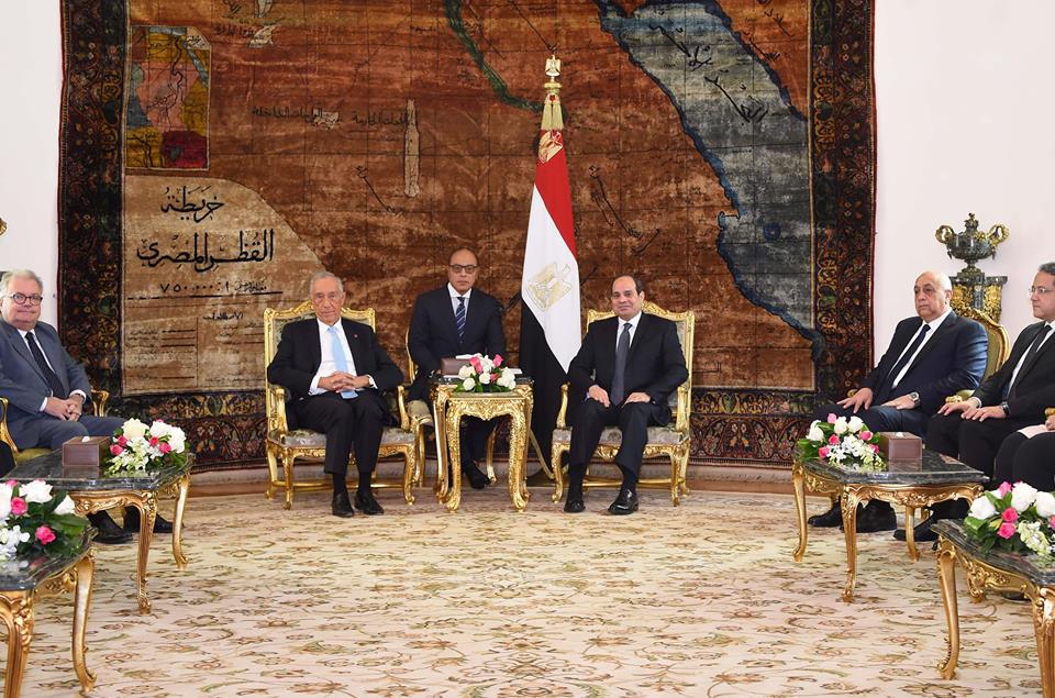 واستقبل الرئيس السيسي نظيره البرتغالي مارسيلو دي سوزا، وعقد الرئيسان لقاءً ثنائيا، أعقبته جلسة مباحثات موسعة بحضور وفدي البلدي، حيث أكد الرئيس السيسي ما تعكسه الزيارة من التزام الجانبين باستمرار العمل على توطيد العلاقات القوية بينهما والممتدة عبر ضفتي المتوسط، خاصة بعد حالة الزخم التي شهدتها تلك العلاقات في أعقاب زيارة الرئيس للبرتغال في نوفمبر 2016، والتي كانت الزيارة الأولى لرئيس مصري للبرتغال منذ 24 عاما.