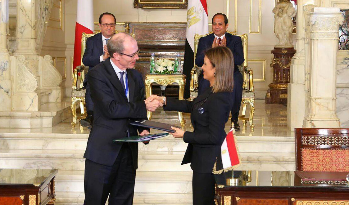 فى حضور الرئيس عبد الفتاح السيسى، والرئيس الفرنسى فرانسوا هولاند، وقعت الدكتورة سحر نصر، وزيرة التعاون الدولى، إتفاقيتين و10 إعلانات نوايا بإجمالي 308 مليون يورو، مع الوكالة الفرنسية للتنمية والحكومة الفرنسية، مساء اليوم الأحد، بقصر القبة الرئاسى.