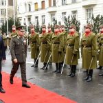 التقي الفريق أول صدقي صبحي القائد العام للقوات المسلحة وزير الدفاع والإنتاج الحربي، بالسيد ايشتيفان شميتشكو وزير الدفاع المجري خلال زيارته الرسمية لدولة المجر، حيث أجريت له مراسم استقبال رسمية بمقر وزارة الدفاع المجرية.